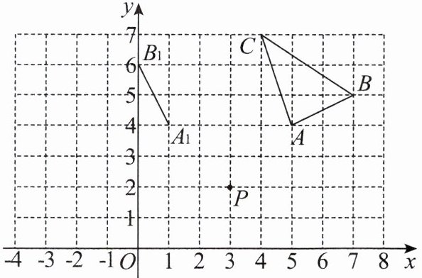 4.如图,在直角坐标系中,线段$A_1B_1$是将△ABC绕着点P(3,2)逆时针旋转一定角度后得到的$△A_1B_1C_1$的一部分,则点C的对应点$C_1$的坐标是( )