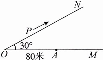 在Rt△AOP中,∠APO=90°,∠POA=30°,OA=80米,所以AP=80×1/2=40(米),