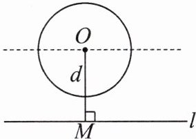 11.如图,给定一个半径长为2的圆,圆心$O到水平直线l的距离为d$,即$OM= d$.我们把圆上到直线$l$的距离等于1的点的个数记为$m$.如$d= 0$时,$l为经过圆心O$的一条直线,此时圆上有四个到直线$l$的距离等于1的点,即$m= 4$,由此可知: