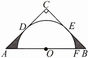 8.如图所示,等腰直角三角形ABC的斜边AB= 4,O是AB的中点,以O为圆心的半圆分别与两腰相切于点D,E.求图中阴影部分的面积.