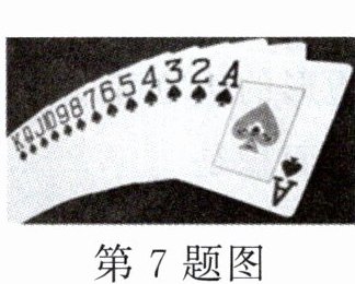 7.如图,是一副普通扑克牌中的13张黑桃牌,将它们洗匀后正面向下放在桌子上,从中任意抽取一张,则抽出的牌的点数小于9的概率为______.