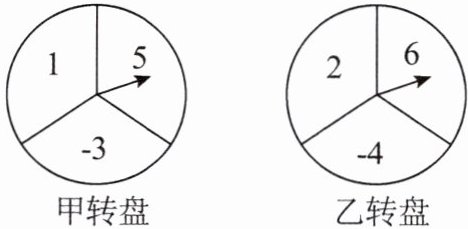 13.如图,甲、乙两个转盘均被分成3个面积相等的扇形,每个扇形中都标有相应的数字,同时转动两个转盘(当指针指在边界线上时视为无效,需重新转动转盘),当转盘停止后,把甲、乙两个转盘中指针所指数字分别记为x,y.请用树状图或列表法求点$(x,y)$落在平面直角坐标系第一象限内的概率.