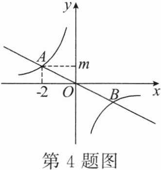 4.如图,正比例函数$y= ax$(a为常数,且$a≠0$)和反比例函数$y= \frac{k}{x}$(k为常数,且$k≠0$)的图象相交于A(-2,m)和B两点,则不等式$ax>\frac{k}{x}$的解集为( )