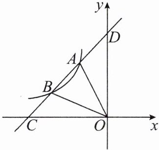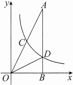 10.如图,在$\triangle AOB$中,$\angle ABO= 90^\circ$,$OB= 4$,$AB= 8$,反比例函数$y= \frac{k}{x}$在第一象限内的图象分别交OA,AB于点C和点D,且$\triangle BOD的面积S_{\triangle BOD}= 4$.