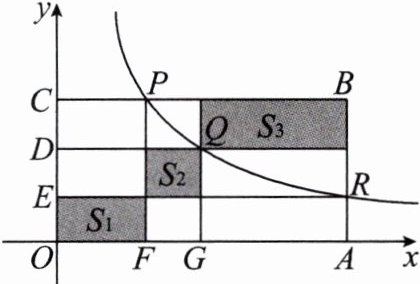 5. 点$ P $,$ Q $,$ R 在反比例函数 y= \frac{k}{x} $(常数$ k>0 $,$ x>0 $)图象上的位置如图所示,分别过这三个点作$ x $轴、$ y $轴的平行线.图中所构成的阴影部分面积从左到右依次为$ S_{1} $,$ S_{2} $,$ S_{3} $.若$ OE= ED= DC $,$ S_{1}+S_{3}= 27 $,则$ S_{2} $的值为______.