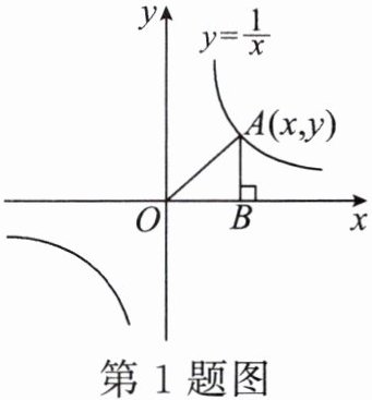 1. 如图是反比例函数$ y= \frac{1}{x} $的图象,点$ A(x,y) $是反比例函数图象上任意一点,过点$ A 作 AB\perp x 轴于点 B $,连接$ OA $,则$ \triangle AOB $的面积是( )