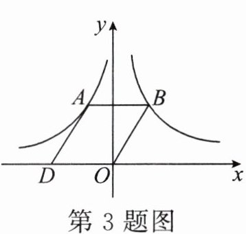 3. 如图,在平面直角坐标系中,点$ O $为坐标原点,平行四边形$ OBAD 的顶点 B 在反比例函数 y= \frac{3}{x} $的图象上,顶点$ A 在反比例函数 y= \frac{k}{x} $的图象上,顶点$ D 在 x $轴的负半轴上.若平行四边形$ OBAD $的面积是5,则$ k $的值是( )
