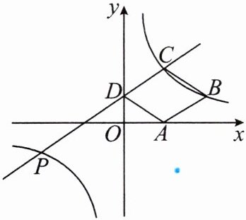 10. 如图,在平面直角坐标系中,菱形$ ABCD 的顶点 D 在 y $轴上,$ A $,$ C 两点的坐标分别为 (4,0) $,$ (4,m) $,直线$ CD:y= ax+b(a\neq0) 与反比例函数 y= \frac{k}{x}(k\neq0) 的图象交于 C $,$ P(-8,-2) $两点.