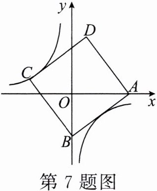 7. 如图,正方形$ ABCD $的边长为5,点$ A 的坐标为 (4,0) $,点$ B 在 y $轴上.若反比例函数$ y= \frac{k}{x}(k\neq0) 的图象过点 C $,则$ k $的值为( )