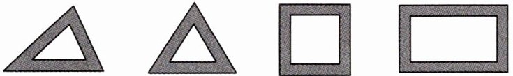 12.下面四个图案:不等边三角形、等边三角形、正方形和矩形,其中每个图案花边的宽度都相同,那么每个图形中花边的内外边缘所围成的几何图形不相似的个数有 ( )