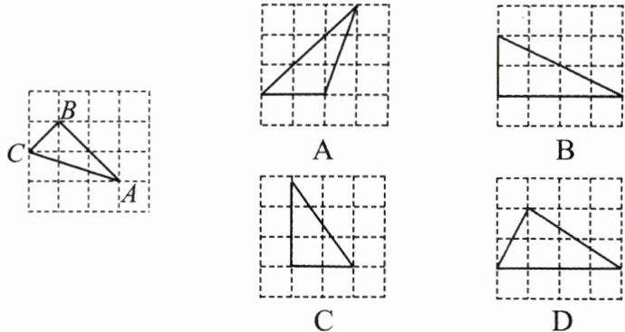 2.下列$4×4$的正方形网格中,小正方形的边长均为1,三角形的顶点都在格点上,则与$\triangle ABC$相似的三角形所在的网格图形是( )