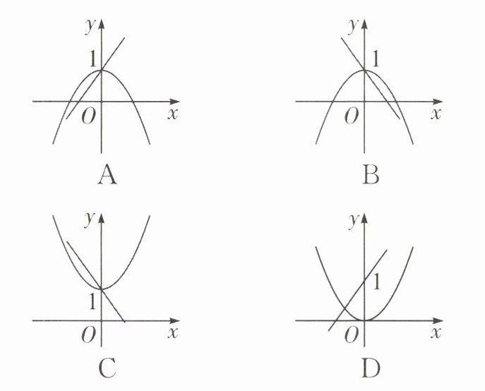 7. 在同一平面直角坐标系中,一次函数$y= ax+1和二次函数y= ax^{2}+1$的图象大致为 ( )