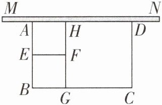 11. 一段长为30 m的墙MN前有一块矩形空地ABCD,用100 m长的篱笆围成如图所示的图形(靠墙的一边不用篱笆,篱笆的厚度忽略不计),其中四边形AEFH和四边形CDHG是矩形,四边形EBGF是边长为10 m的正方形,设 $ CD= x $ m.