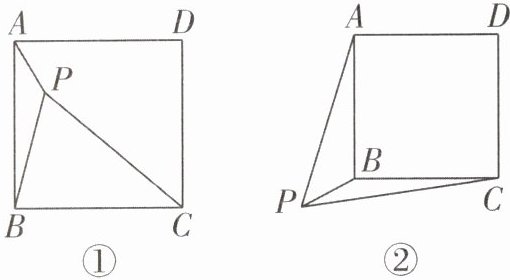 (2)如图②,P是正方形ABCD外一点,PA= 3,PB= 1,PC= $\sqrt{11}$,求∠APB的度数.