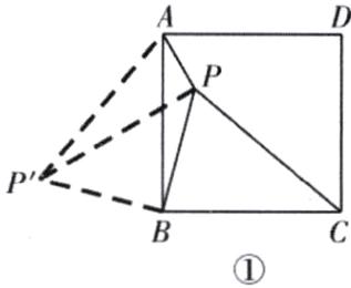 (2)如图②,将△BPC绕点B逆时针旋转90°,得到△BP'A,连接PP'.