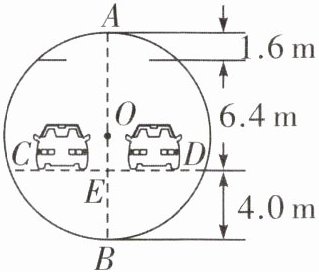 ·变式2:下图是一张盾构隧道断面结构图,隧道内部是以$O$为圆心,$AB$为直径的圆.隧道内部共分为三层,上层为排烟道,中间为行车隧道,下层为服务层.点$A到顶棚的距离为1.6\ m$,顶棚到路面的距离为$6.4\ m$,点$B到路面的距离为4.0\ m$.请求出路面$CD$的宽.