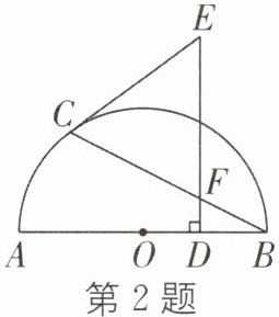 2. 如图,AB 是半圆 O 的直径,点 C 在半圆上(不与点 A,B 重合),DE⊥AB 于点 D,交 BC 于点 F. 下列条件能判定 CE 是切线的是 ( )