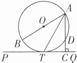 ·变式2:如图,AB是⊙O的直径,PQ切⊙O于点T,AC⊥PQ于点C,交⊙O于点D.