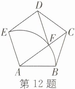 12. 如图,在正五边形 ABCDE 中,连接 AC,以点 A 为圆心,AB 为半径画圆弧,交 AC 于点 F,连接 DF. 则∠FDC= ______.