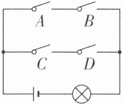 6. 如图,电路图上有四个开关A,B,C,D和一个小灯泡,任意闭合其中两个开关,小灯泡发光的概率是 ( )