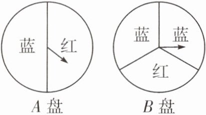 13. 小颖和小亮都想去观看"垃圾分类"宣传演出,但只有一张入场券,于是他们设计了一个"配紫色"游戏:如图,A,B是两个可以自由转动的转盘,每个转盘都被分成面积相等的几个扇形. 同时转动两个转盘,如果其中一个转盘转出了红色,另一个转盘转出了蓝色,那么可以配成紫色. 若配成紫色,则小颖去观看;否则小亮去观看. 求小颖去观看的概率.