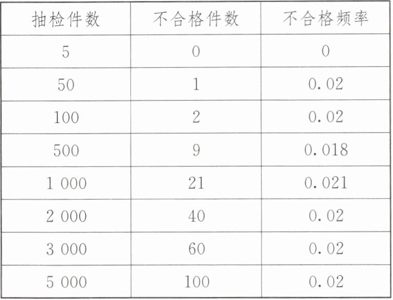 4. 某企业对其生产的产品进行抽检,抽检结果如下表.