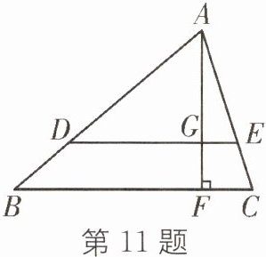 11. (2023·镇海期末)如图,在△ABC中,D,E分别在AB,AC边上,DE//BC,AF⊥BC于点F,DE与AF交于点G.若△ADE与四边形DBCE的面积相等,则FG:AG的值为 ( )