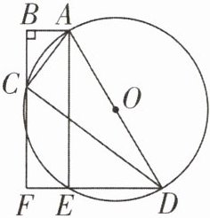 ·变式3:如图,在四边形 BFDA 中,$\angle B= 90^{\circ}$,$DF// AB$,以 AD 为直径作$\odot O$,$\odot O$与 BF 的一个交点为 C,$\odot O$交 DF 于点 E,连接 AC,AE,CD,$AB= 3$,$BC= 4$,$CF= 7.2$.