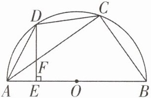 16. 如图,四边形ABCD内接于⊙O,AB为直径,AD= CD.过点D作DE⊥AB于点E.连接AC,交DE于点F.若sin∠CAB= $\frac{3}{5}$,DF= 5,则BC的长为( )