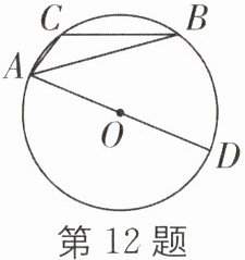 12. 如图,⊙O是△ABC的外接圆,AD是⊙O的直径.若⊙O的半径是4,sin B= $\frac{1}{4}$,则AC的长为______.