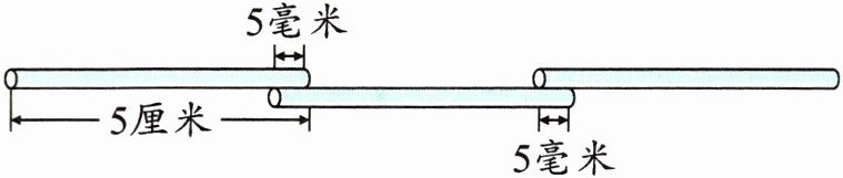 5×2=10(毫米) 10毫米=1厘米5×3−1=14(厘米)答:这3根木棒粘在一起有14厘米。