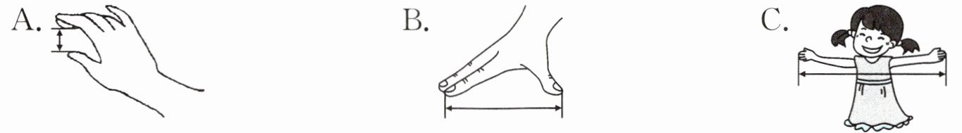 1. 用手势表示1分米的长度,下列选项中,最有可能的是(