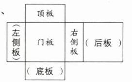 一 笑笑家新定制的衣柜准备组装。衣柜的制造商提供了衣柜的板材和一份详细的组装图纸,其中包括了衣柜的展开图。请你在括号中标出衣柜的底板、后板、左侧板。