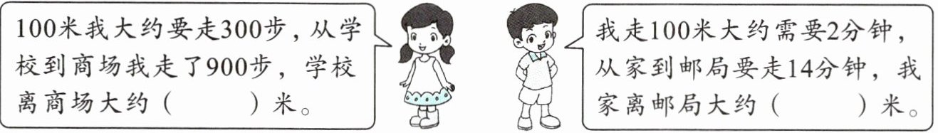 100米我大约要走300步,从学校到商场我走了900步,学校离商场大约(