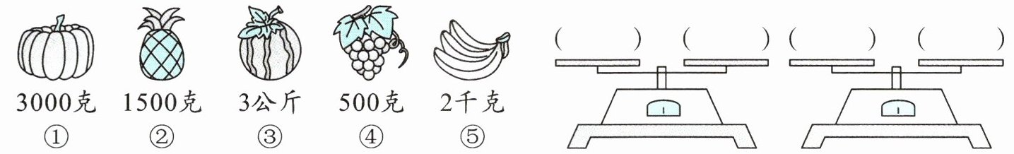 四 下面的这些物品,怎样放才能使两个天平都处于平衡状态?(填序号)