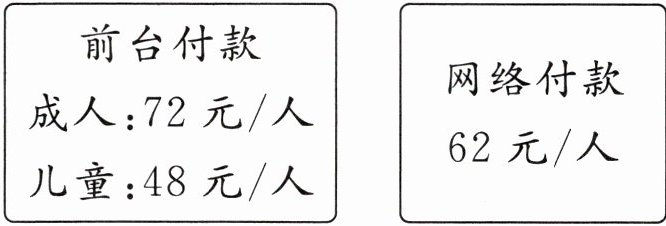 $72×2+48=144+48=192$(元)$62×3=186$(元)$186<192$答:网络付款更省钱。