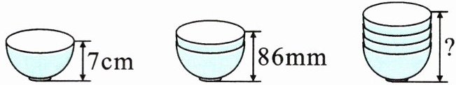 $7cm=70mm$$(86-70)×3+70=16×3+70=118(mm)$答:4 只碗摞在一起 118mm。