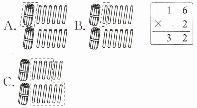 )中圈起来的小棒可以表示右面竖式中进位“1”的含义。A.
