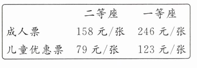 三 我国铁路实施新规,年满6周岁且未满14周岁的儿童可以购买优惠票。爸爸妈妈和贝贝(12周岁)坐高铁回家,买票至少要花多少钱?