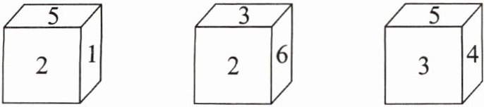 四 有一个正方体,6个面上分别写着1,2,3,4,5,6。从不同的角度观察的情况如下图,猜猜这个正方体相对的两个面上的数字各是几?