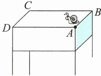 2. 有一只小蜗牛,想从桌面上的 A 点爬到 C 点,请你为它设计一条最短的爬行路线,在图中画出来。