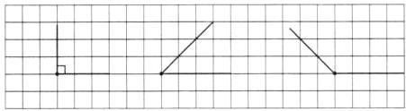 1. 根据给出的点和边画一个直角,再在右边画一个锐角和一个钝角。