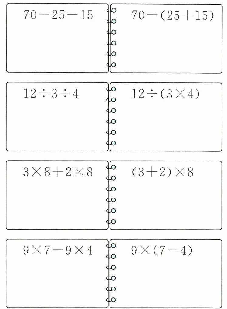45-(16+9) 6×7-18 35-(26-5)(12+15)÷3 48÷(4+2) 27÷(9÷3)