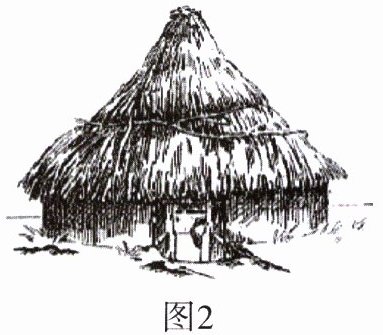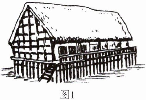 (1)图 1:河姆渡人的干栏式建筑;图 2:半坡人的半地穴式房屋。