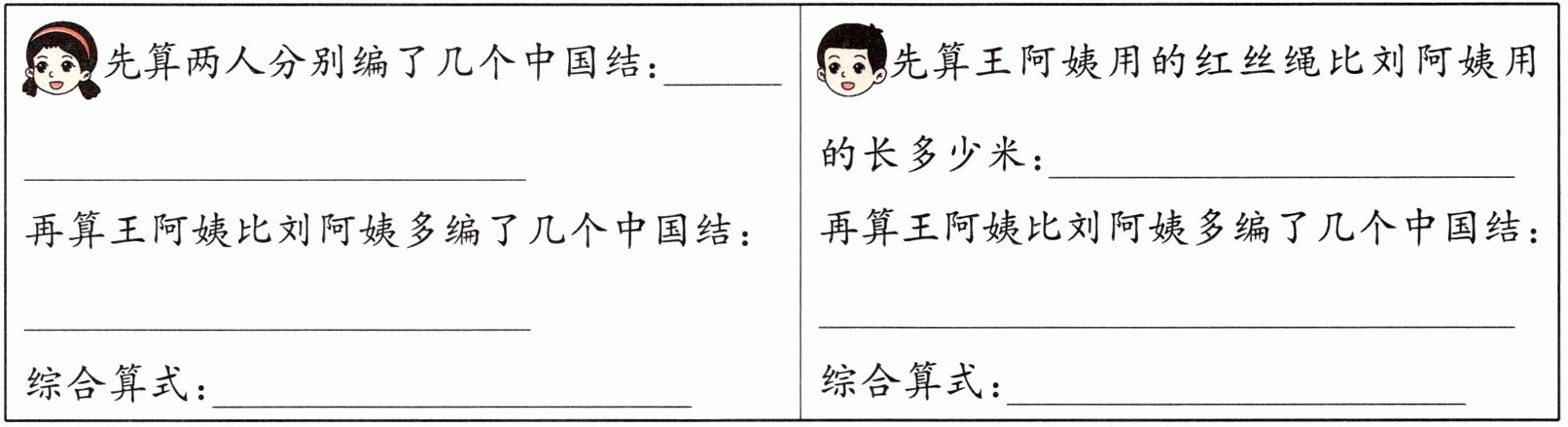 再算王阿姨比刘阿姨多编了几个中国结:______