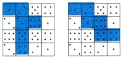 4. 如图,左面涂色的6个相连的小正方形可以折成一个正方体,且相对两个面上的点数之和都是7。在右面的网格图中找出满足条件的6个相连的小正方形。