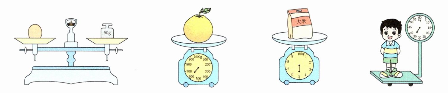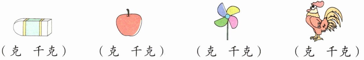 1. 计量下面的物品有多重,用哪个单位合适?圈一圈。