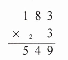 $\begin{array}{r} 183\\ ×\quad 3\\ \hline 549\end{array} $