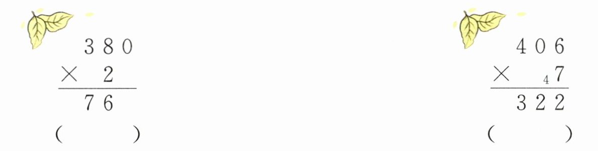 $\begin{array}{r} 380\\ ×\quad 2\\ \hline 76\end{array} $