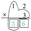 $\begin{array}{r} 12\\ ×\quad 3\\ \hline □□\end{array}\\ \hline □□ $